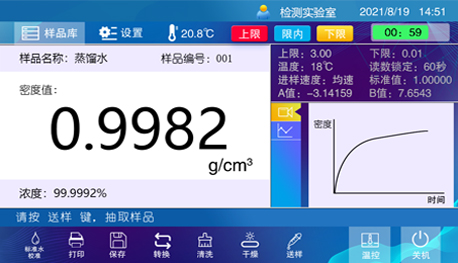 U型震蕩法密度計,電子式液體密度計生產廠家5寸觸摸屏 自動進樣自動清洗干燥 樣品用量少
